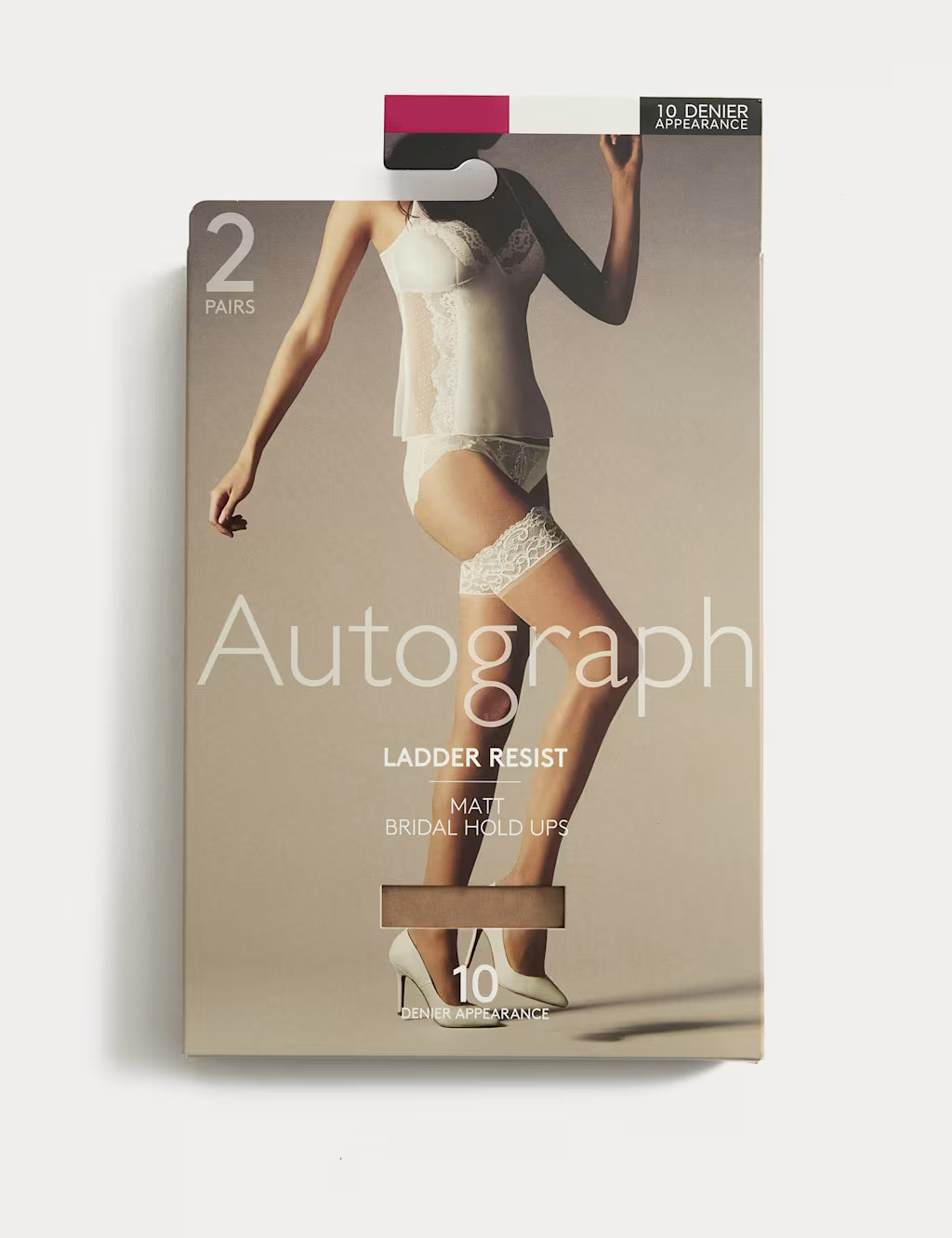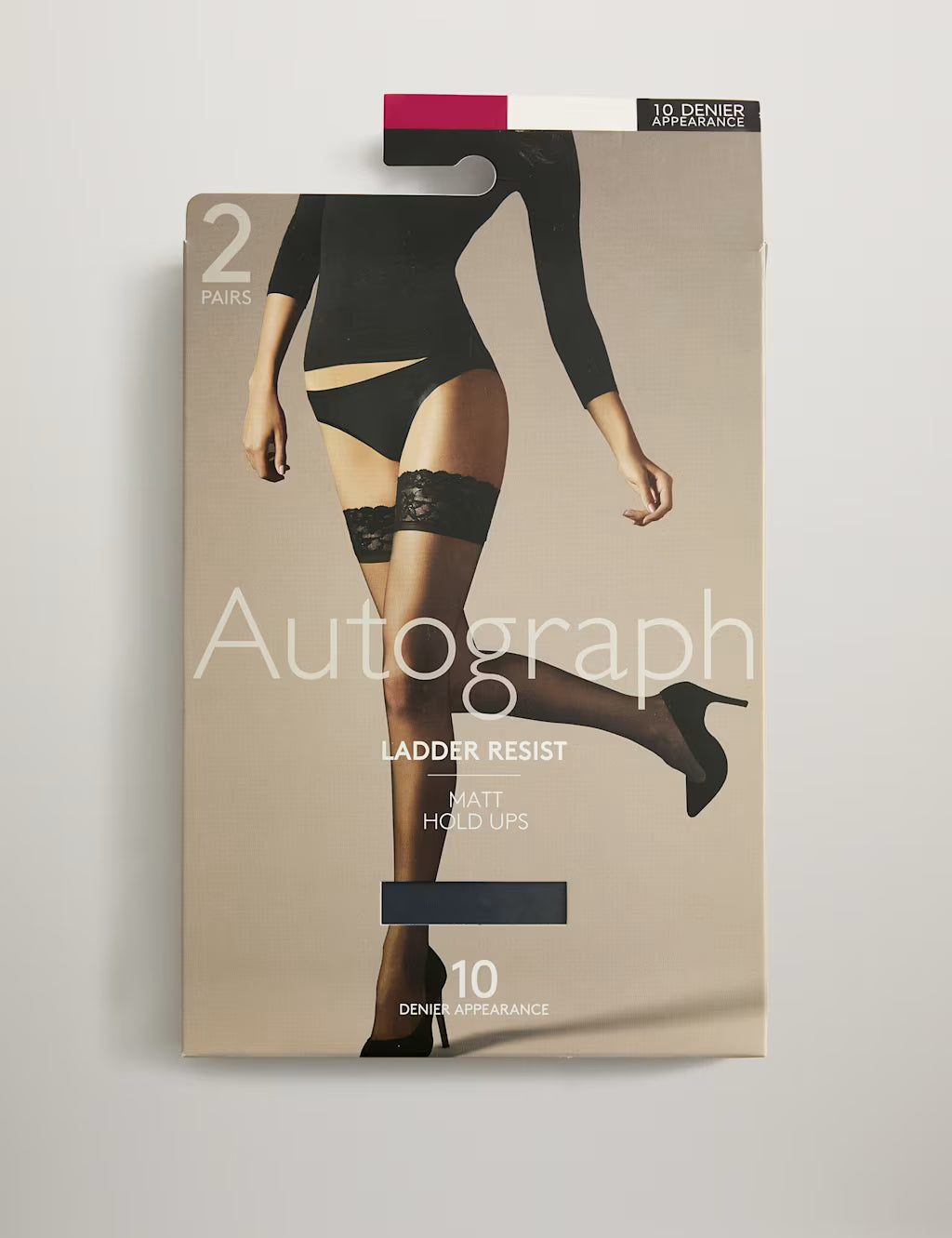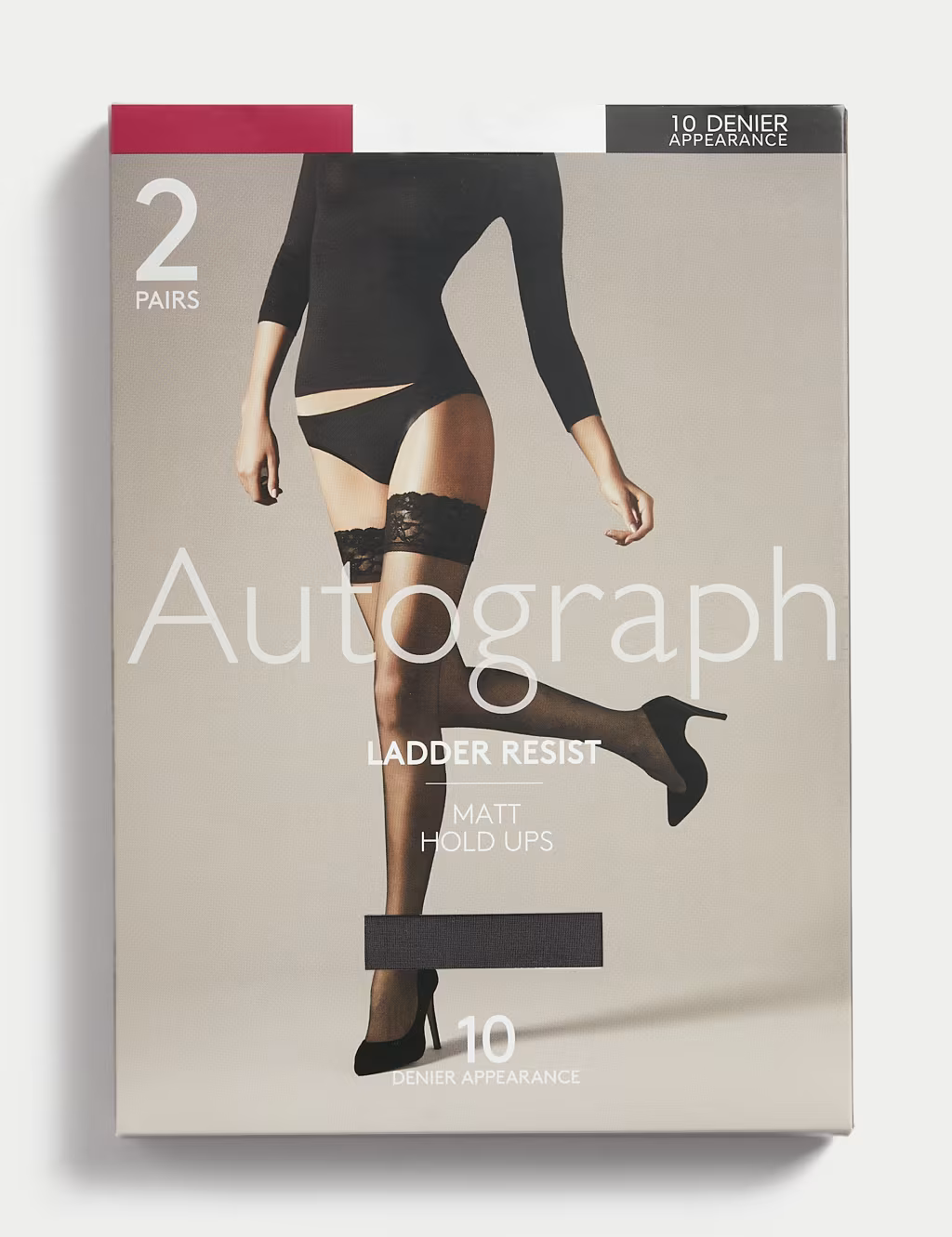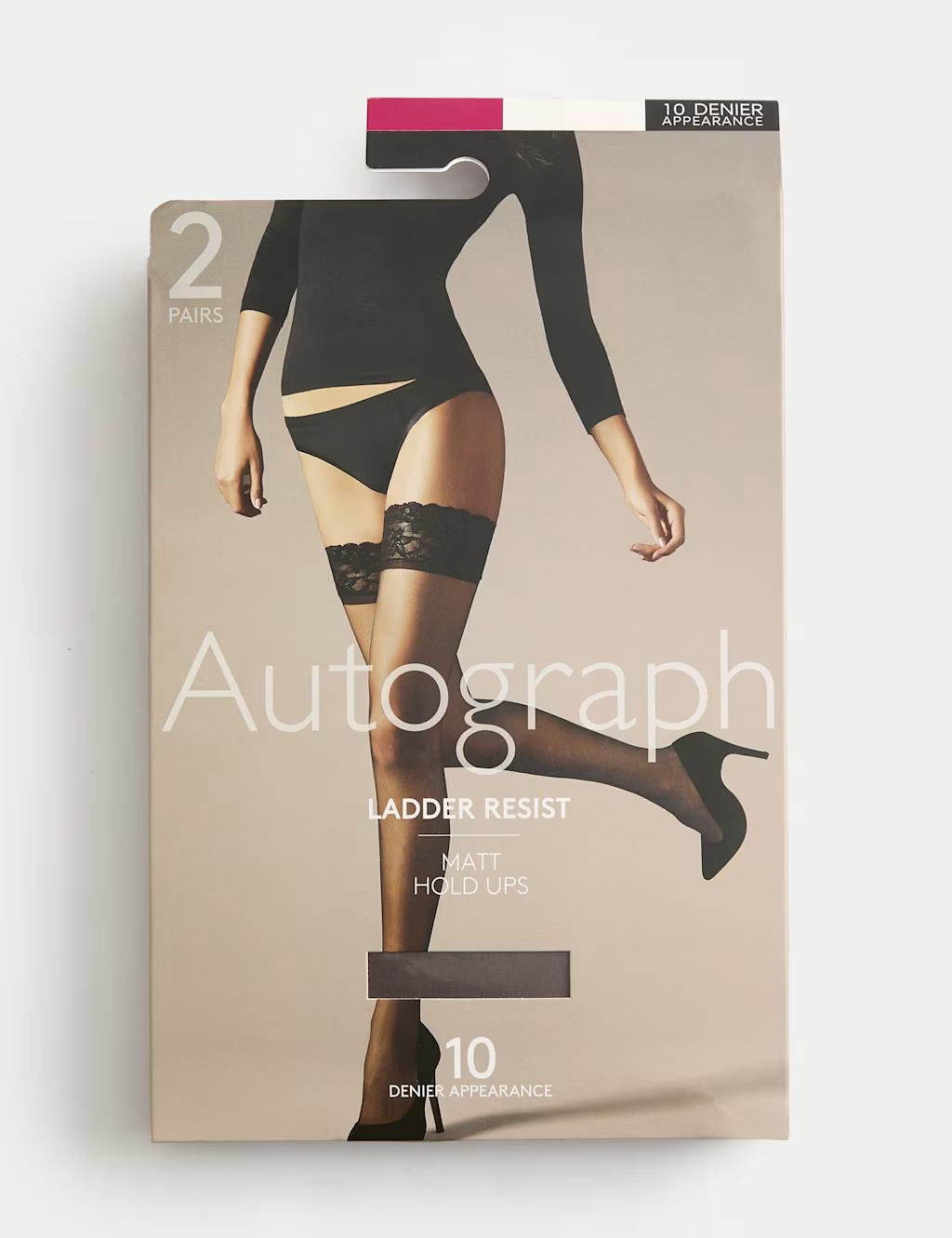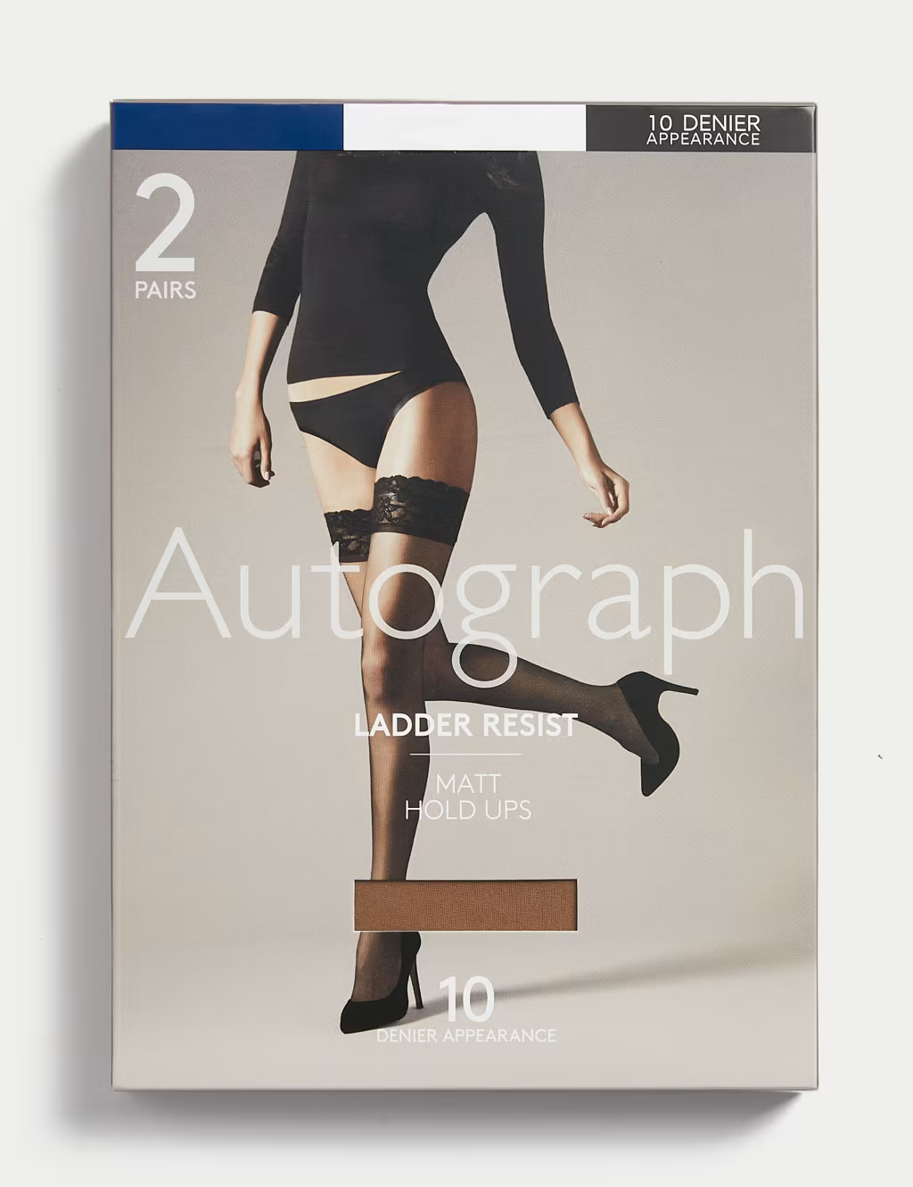 These 10 denier hold-ups from our Autograph collection combine ultra-sheer comfort with ladder-resisting power. They offer a smooth matt finish, giving a sophisticated touch to your ensemble. Reinforced toes ensure extra durability, while added stretch provides comfort. Handy two-pack. Autograph: refined fabrics and modern silhouettes for an effortless, understated style.