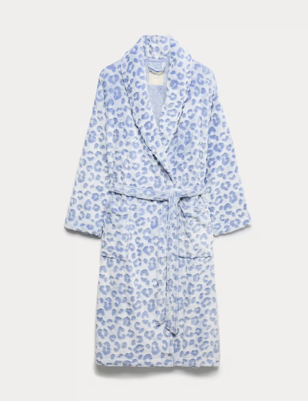 Add a subtle shimmer to your sleepwear with this stylish dressing gown. It features a flattering long hem and a belt, so you can stay cosy. Two pockets provide handy storage, while the animal print design has a textured finish for a modern feel. M&S Collection: versatile styles in modern shapes with unique and playful details