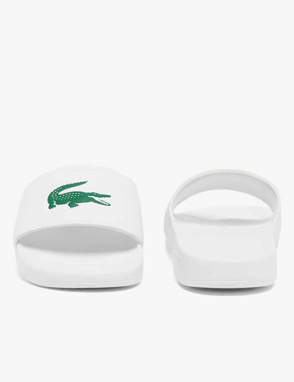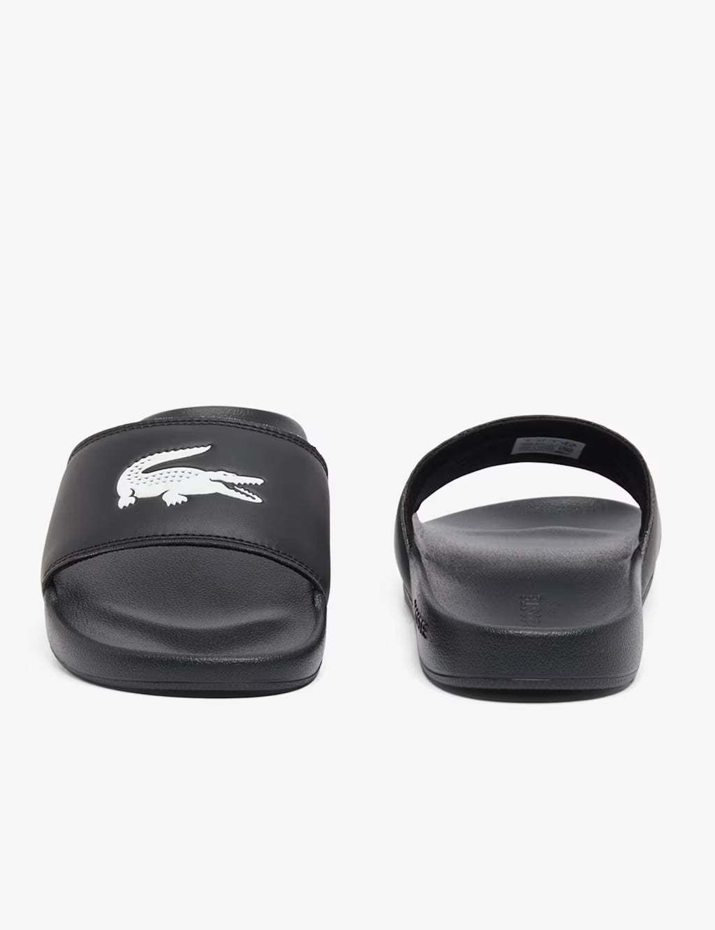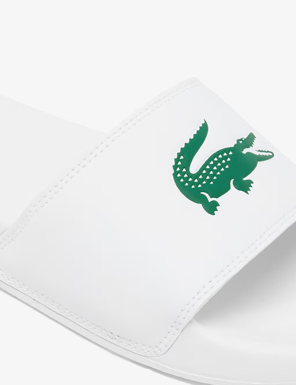 These sleek sliders by Lacoste are made from leather, making them a luxe choice for those off-duty days. The classic slip-on design has flat soles and gently contoured footbeds for comfortable wear. The wide straps feature tonal stitched detailing and the brand's iconic crocodile logo for a statement finish.