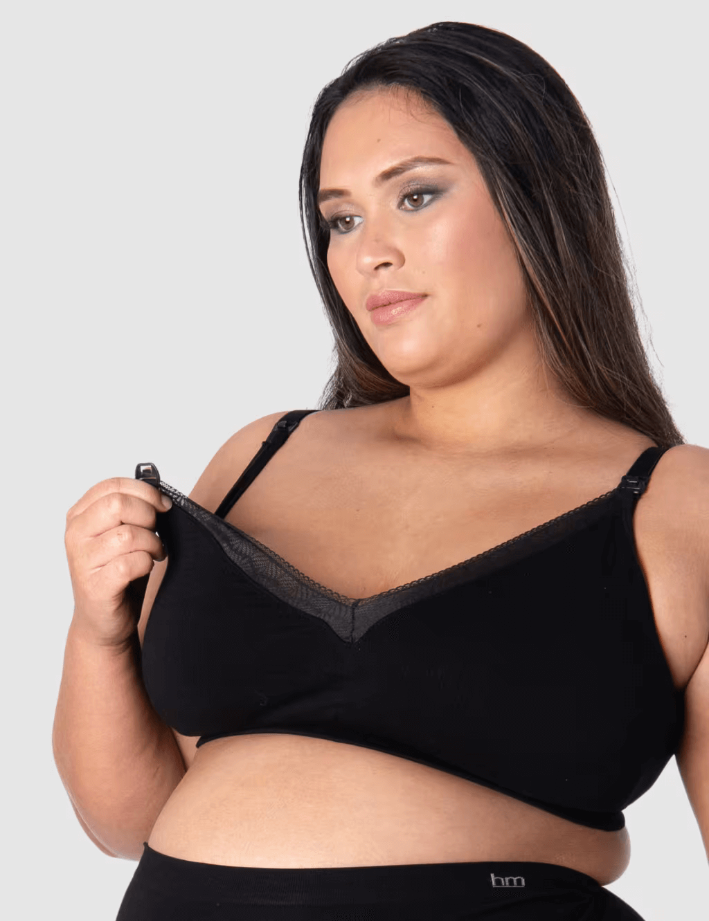 The Caress bra from Hotmilk is designed to make your nursing journey a little easier. The flattering plunge style has removable padding and a non-wired construction for a super-comfortable feel that still lifts the bust. It's crafted from soft fabric with side sling nursing support so you can have more skin-skin contact while feeding.