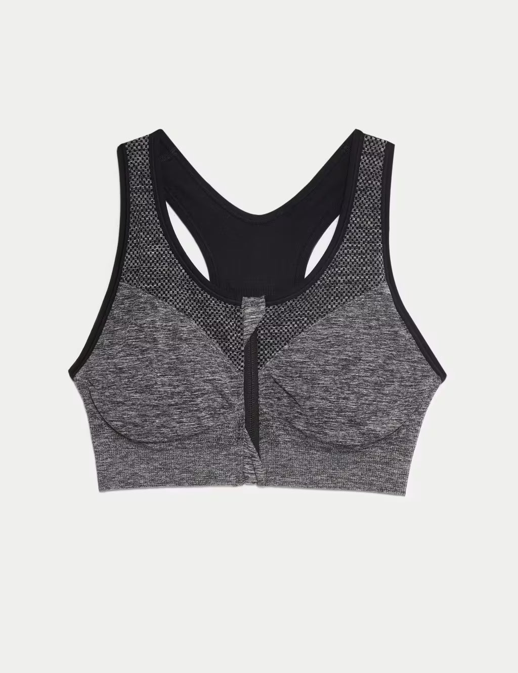 This post-surgery sports bra from our Goodmove collection is crafted from breathable, lightweight foam for comfort against sensitive skin. It's non-padded and offers medium support, with features like a ribbed underband. The bra has a convenient zip front opening with zip guards for an added gentle touch, plus a prosthesis pocket inside.
