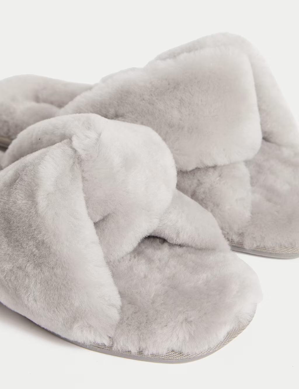 Slip your feet into these soft shearling slider slippers for a truly luxurious feel. These open-toe flats are designed with wide straps across the foot, that are knotted for a stylish twist. M&S Collection: easy-to-wear wardrobe staples that combine classic and contemporary styles.